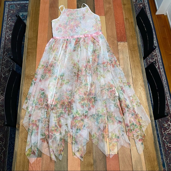 Lilt Dresses Girls 12 Lilt Formal Easter Party Floral Mesh Sequins Handkerchief Dress Poshmark